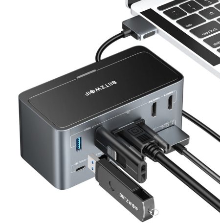BlitzWolf BW TH13 USB-C dokkoló állomás összesen 18 csatlakozóval, köztük M.2 SSD foglalattal és 4 db kijelző kimenettel most csak 46.99$ a BG4d5e65 kuponnal (~15100 Ft).
