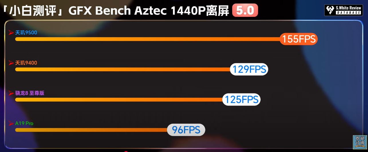 A nyers grafikus teljesítményt illetően azonban teljesen más kép rajzolódik ki. A 3DMark Wild Life Extreme tesztjében a Dimensity 9500 8251 pontot szerzett, ami jelentős, nagyjából 25%-os előnyt jelent az A19 Pro 6557 pontos eredményével szemben.