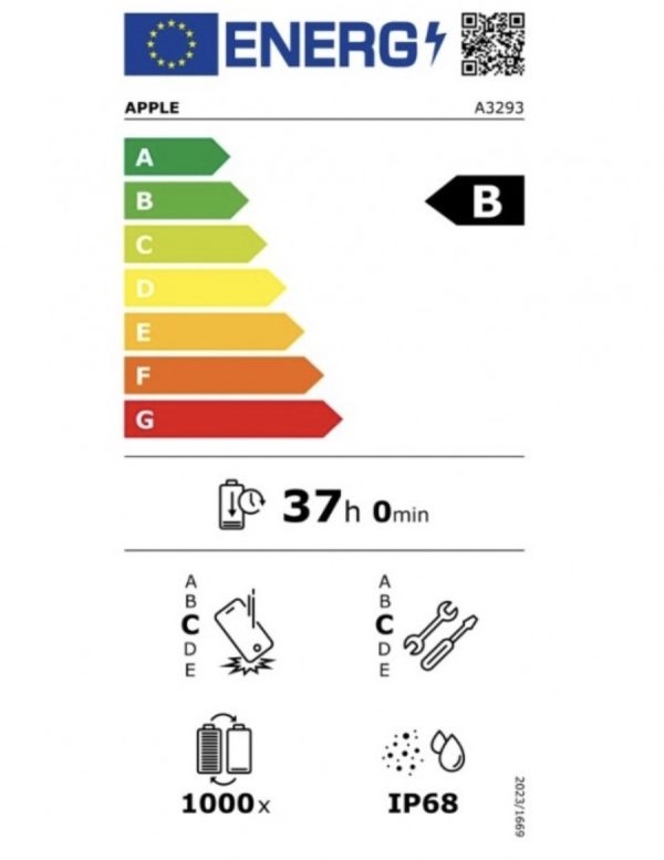 A telefonok és tabletek dobozában továbbá lesz egy új címke, ami mindenféle fontos információt tartalmaz: energiatakarékossági besorolás, akkumulátoros üzemidő, esésekkel szembeni ellenállás, az akkumulátor élettartama ciklusokban, javíthatósági osztályozás, IP besorolás (por és víz elleni védelem).