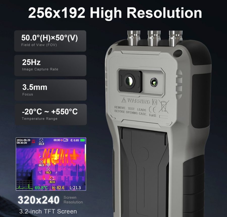 A TH202 egyik legfontosabb eleme a nagy felbontású hőkamera, amely 25 Hz-es képfrissítéssel működik, lehetővé téve a hőmérséklet-változások valós idejű megfigyelését. A vanádium-oxid (VOx) szenzor megfelelő érzékenységet biztosít, míg a beépített mechanikus kalibrációs rendszer időszakosan automatikus korrekciót végez a mérési pontosság fenntartása érdekében.