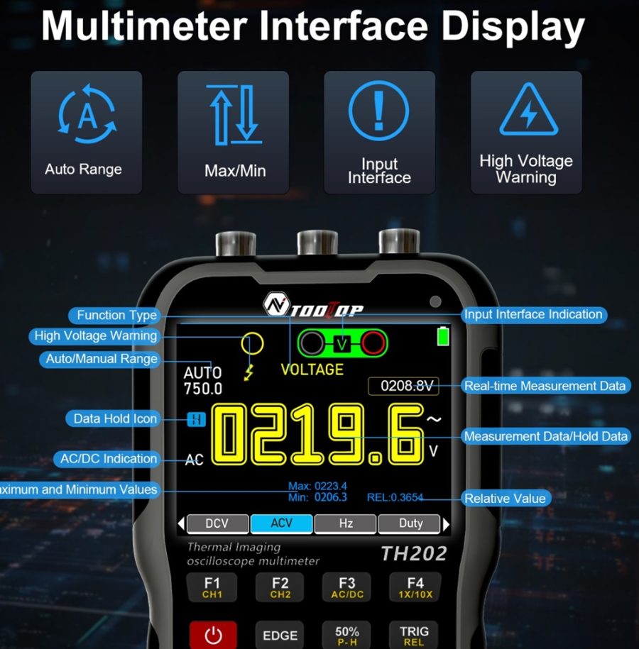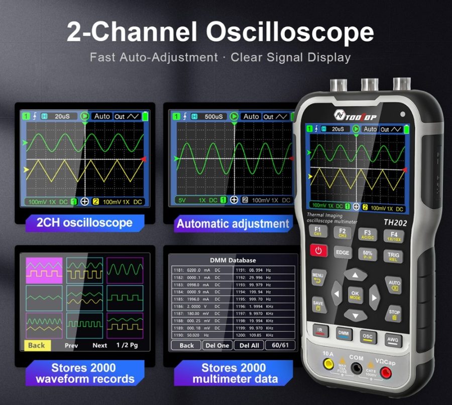 Az AV TOOLTOP TH202 több különálló mérőműszer funkcióját egyesíti egy hordozható eszközben. Bár teljesítménye nem minden esetben éri el a dedikált laboratóriumi műszerek szintjét, mobilitása és sokoldalúsága miatt hatékony megoldást kínál helyszíni diagnosztikai feladatokhoz.