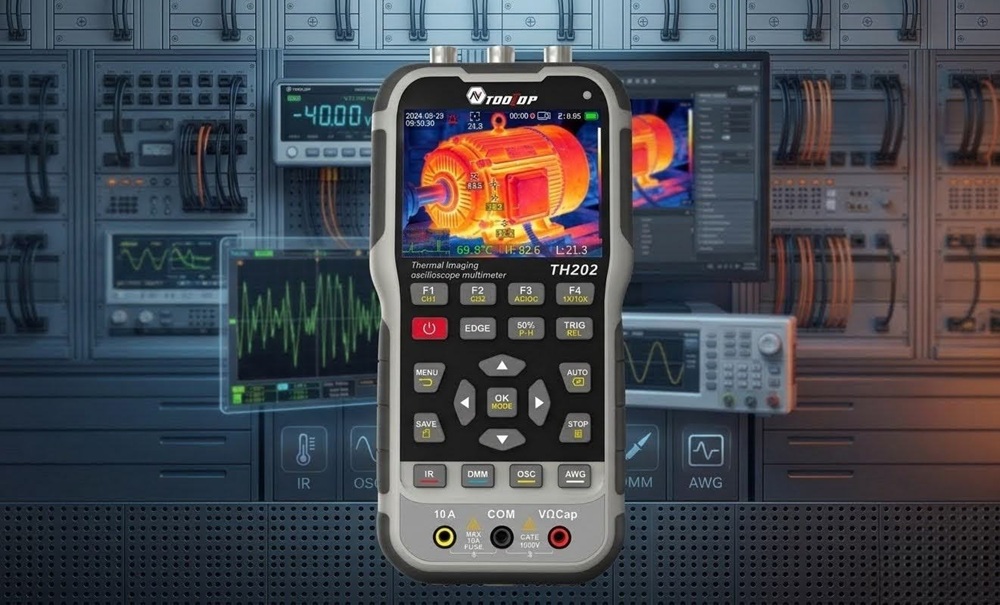 Az AV TOOLTOP TH202 a hordozható mérőműszerek új generációját képviseli, amely egyetlen robusztus eszközben egyesít négy nélkülözhetetlen diagnosztikai funkciót. Legyen szó bonyolult áramkörök hibakereséséről, hálózati diagnosztikáról vagy épületgépészeti ellenőrzésről, ez a 4 az 1-ben műszer minden helyzetben megállja a helyét. Az integrált kialakítás révén a szakembereknek nem kell többé különálló asztali eszközöket cipelniük a helyszíni mérésekhez, hiszen minden fontos adatot egyetlen képernyőn láthatnak.