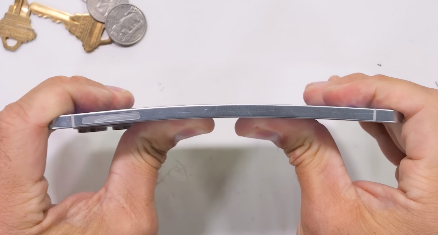 A Samsung ellendrukkerek biztos abban reménykedtek, hogy a hajlítási teszt során a készülék csúfosan felsül, de erről szó sincs. Hátulról feszítve a mobil kiválóan tűri a megpróbáltatásokat, és bár szemből a hátlapja picit elenged a bekapcsológombnál, a telefon tökéletesen működőképes marad, ami tényleg figyelemre méltó eredmény a rendkívül vékony dizájn fényében.
