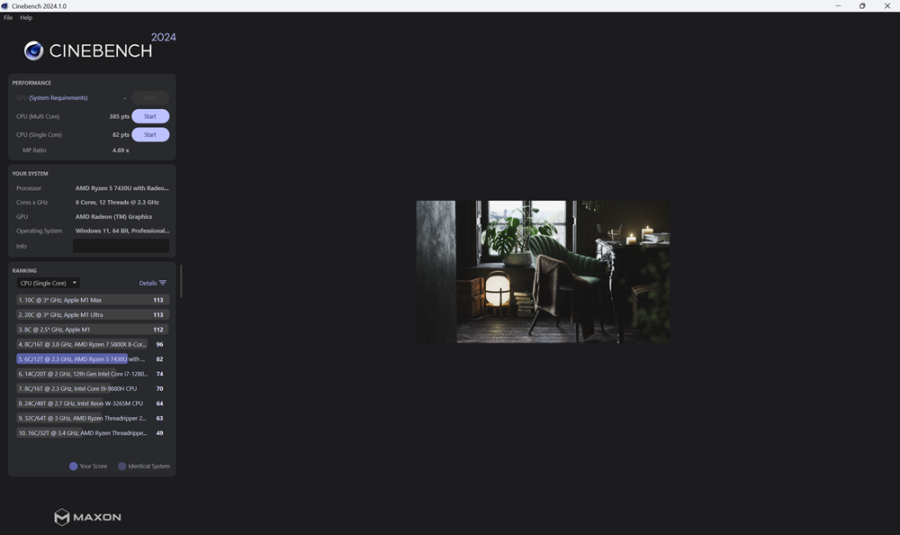 - Cinebench benchmark tesztben: egymagos 385, többmagos 82 pontot ért el, 4,69-es MP Ratio számmal. Ezek az eredmények azt mutatják, hogy a processzor jól teljesít az egyszálas és a többszálas feladatokban is, bár a többmagos pontszám jelzi, hogy komolyabb, erőforrásigényesebb feladatoknál lassulás tapasztalható.