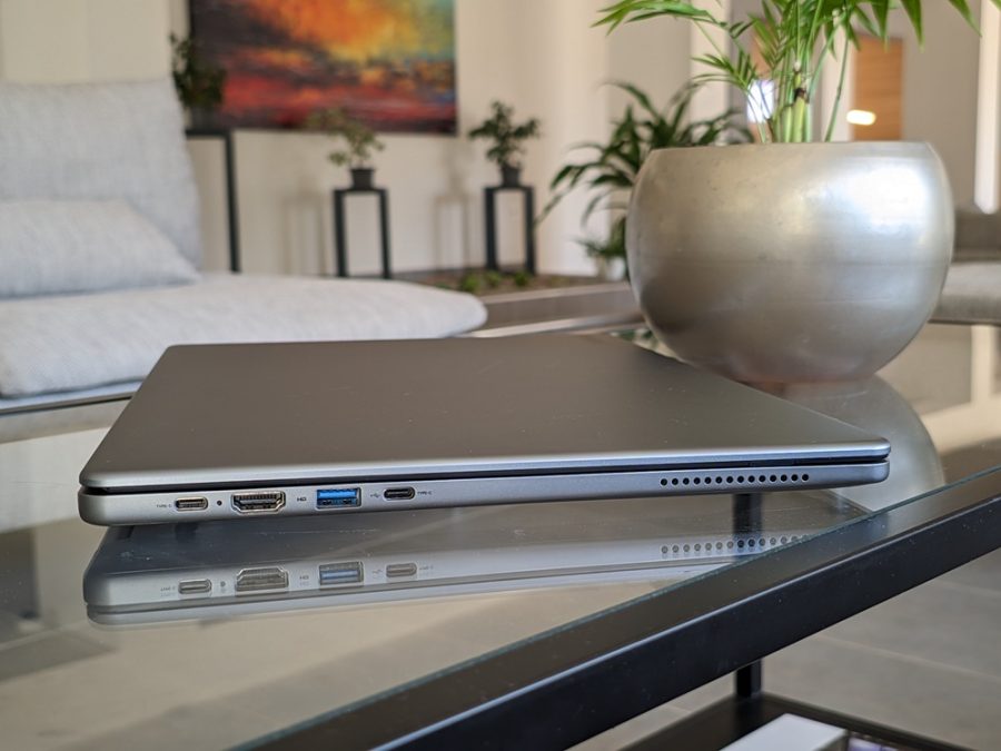 - Színlefedettség: 100% sRGB, ami hatalmas előrelépés a tavalyi modell 62%-os értékéhez képest. A színek élénkek, pontosak, így a laptop akár hobbiszintű fotó- és videószerkesztési feladatokra is alkalmassá válik.