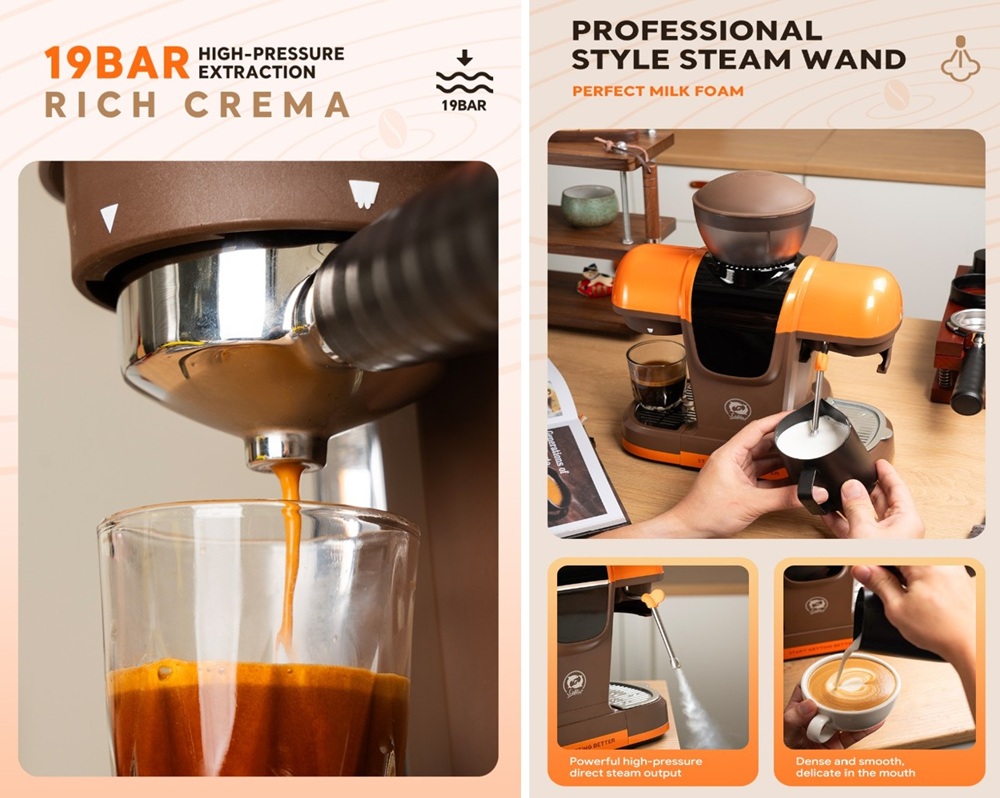 A készülék beépített kúpos darálóval rendelkezik, így közvetlenül a főzés előtt készíthető el az őrlemény, megőrizve a kávészemek aromáit. A szemcseméret több fokozatban állítható. A kivonatolásról egy 19 bar nyomásra képes olasz szivattyú gondoskodik, amelyet intelligens előáztatási (pre-infusion) rendszer támogat: a gép először alacsony nyomáson átnedvesíti a kávépogácsát, majd ezt követi a teljes nyomású extrakció a tökéletes crema érdekében. A stabil hőmérsékletet a beépített PID-vezérlés garantálja, így elkerülhető a kávé megégése.