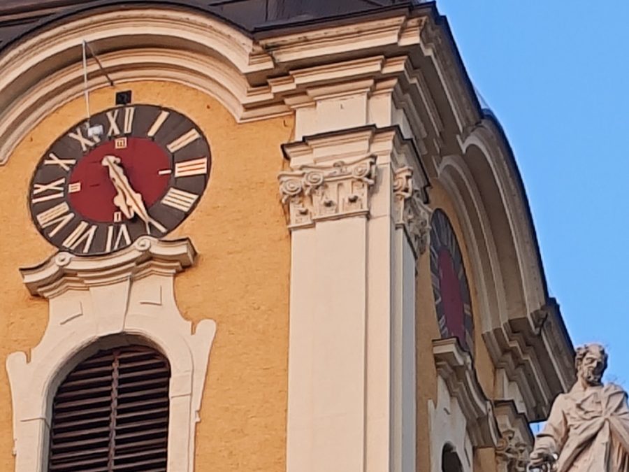 A zoom képeken a 5×-ös nagyítás még elfogadható: az óramutató állása kivehető, az építészeti részletek megmaradnak, bár a képélesség már nem az igazi.