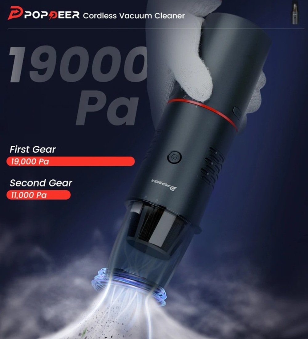 A Popdeer PD-E Pro porszívója két különböző szívóerő-fokozattal rendelkezik, amelyeket a felhasználók a tisztítandó felület és a szennyeződés mértéke szerint választhatnak. Az alacsonyabb fokozat 70 wattos teljesítményt és 11000 Pa szívóerőt kínál a gyors és felületes tisztításokhoz, míg a magasabb fokozat 120 wattos teljesítménnyel és 19000 Pa szívóerővel rendelkezik a makacsabb szennyeződések eltávolításához.