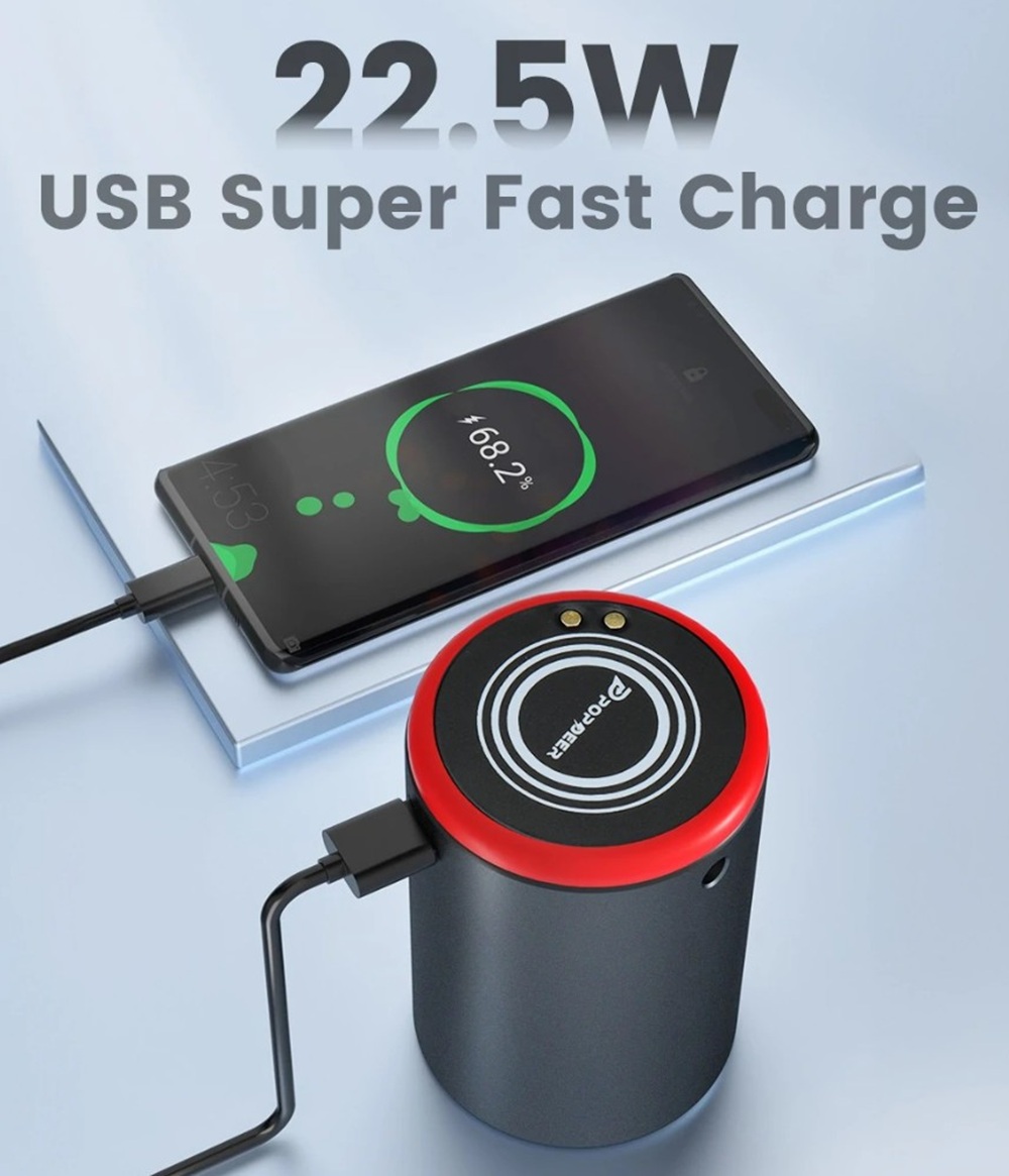 A powerbank funkció egy kétségtelenül hasznos kiegészítő, amely tovább növeli a Popdeer PD-E Pro sokoldalúságát. A 15000 mAh-s kapacitás elegendő lehet egy átlagos okostelefon többszöri teljes feltöltéséhez, ami különösen hasznos lehet hosszabb utazások során vagy vészhelyzetekben, amikor nincs más töltési lehetőség. A vezeték nélküli töltés lehetősége tovább növeli a felhasználói kényelmet, hiszen a kompatibilis eszközöket egyszerűen csak a powerbank tetejére kell helyezni a töltés megkezdéséhez. A készülék kialakításánál figyelembe vették az autós felhasználást, amit jól példáz a powerbank kerek formája, amely így kényelmesen elfér az autó pohártartójában.
