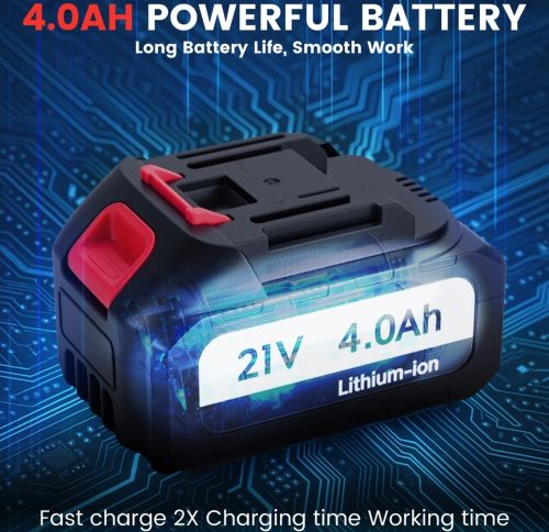 A készüléket egy 21 V / 4,0 Ah kapacitású, 20000 mAh-s akkumulátor látja el energiával. Ez a nagy kapacitású telep biztosítja a hosszan tartó működést, így egyetlen feltöltéssel kényelmesen lemoshatod az autódat, vagy elvégezheted a ház körüli tisztítási feladatokat. Az akkumulátor töltöttségi szintjét egy LED kijelzőn követheted nyomon, így mindig tudni fogod, mennyi energia áll még a rendelkezésedre.
