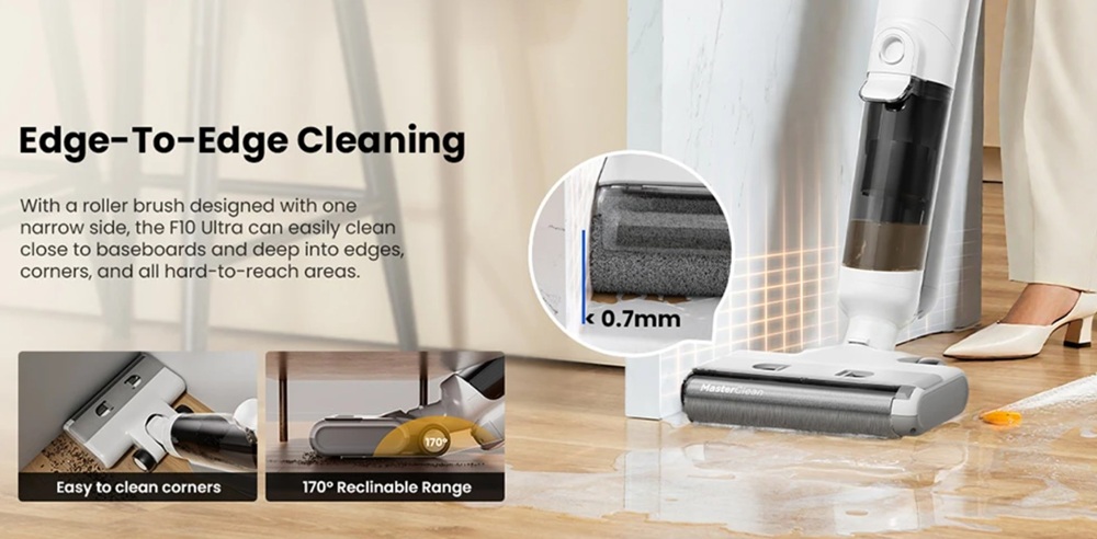 A Proscenic F10 Ultra a gyártó „Real Fresh Water” rendszerére épít, amelynek lényege, hogy a hengerkefét folyamatosan friss víz mossa, miközben egy lehúzó él azonnal eltávolítja róla a szennyezett folyadékot. Ennek köszönhetően a padló minden egyes menetben tiszta vízzel érintkezik.