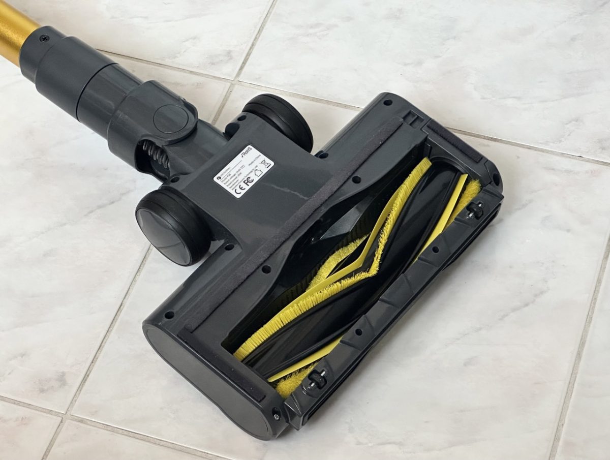 Az egyik legfontosabb használati mód, amikor a nagy forgókefés fejjel dolgozunk, ez különféle padlótípusoknál és szőnyegeknél is hatékonyan működik. A többféle sörtét (erősebb, finomabb és gumis) kombináló, V alakú kefe szépen fellazítja és felszedni a szennyezőségeket, és belül van egy fésű is, ami a hajszálak feltekeredését nehezíti meg. Előre pedig zöld LED-eket szereltek, amelyek megvilágítják a port a padlón, így jobban látszik, hogy hol van még szükség takarításra.