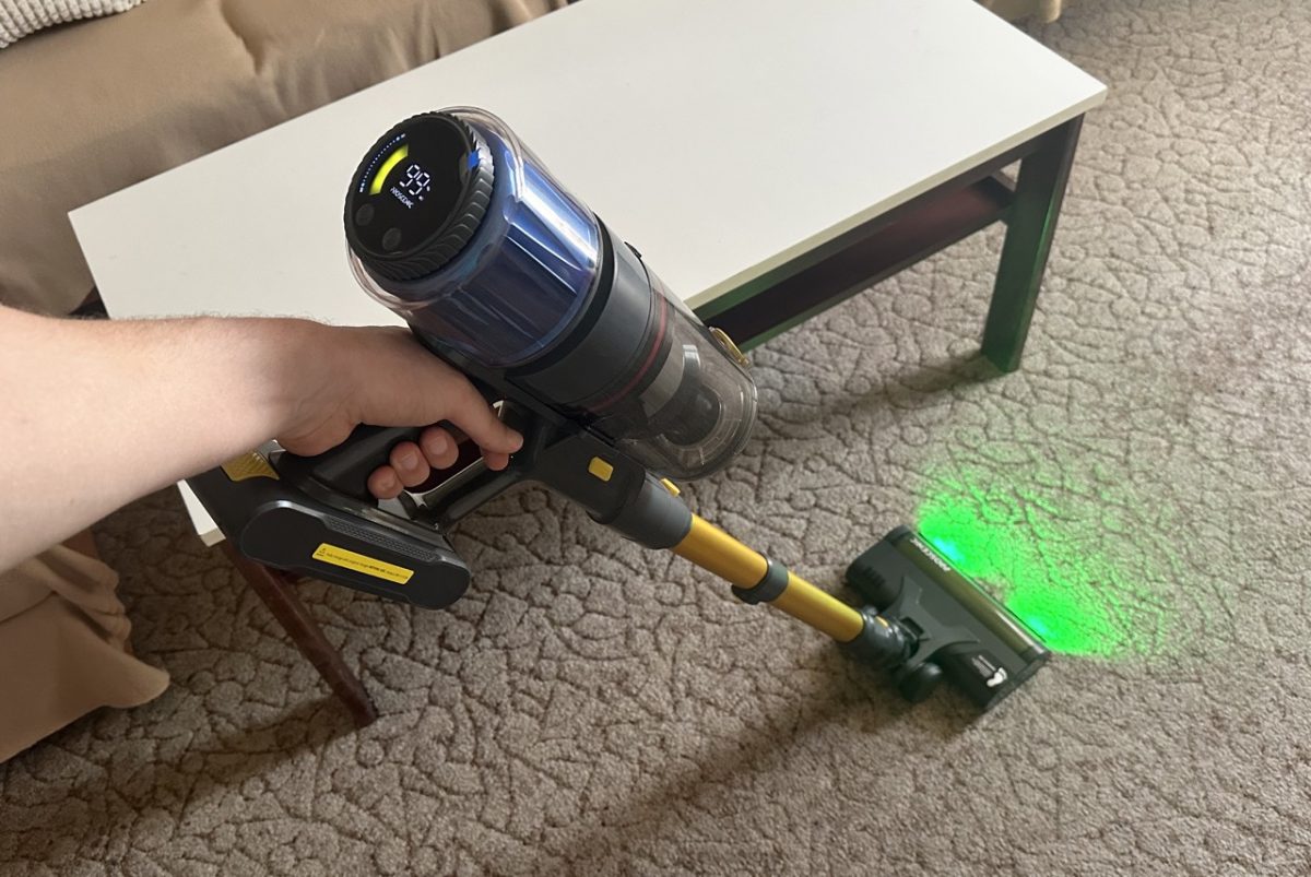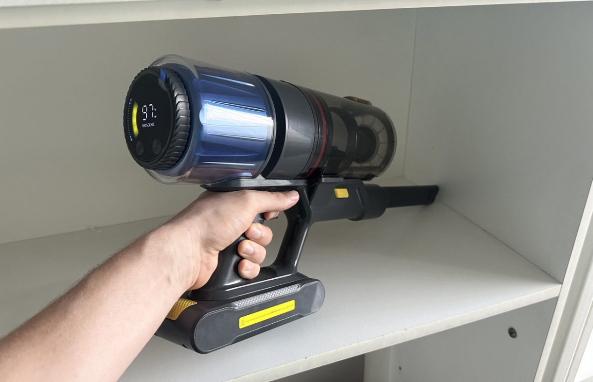 Ahogy a többi hasonló akkus porszívónál, a Proscenic P15-nél is az a legfőbb előny, hogy nem vagyunk konnektorhoz kötve, nem kell vezetékekkel bajlódni takarítás közben, és bármikor egy pillanat alatt elő tudjuk kapni, ha szükség van rá, elég egy gombnyomás, és már mehet is a takarítás.