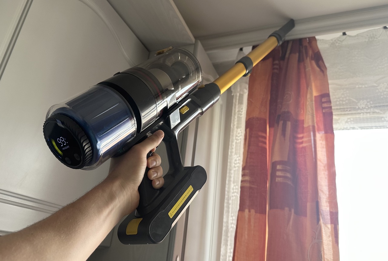 A Proscenic P15 egyik extra funkciója, hogy a hosszabbító cső teleszkópos, vagyis variálható a hossza, így be tudjuk állítani az ideális pozícióba az éppen végzett munka, illetve a magasságunk függvényében.