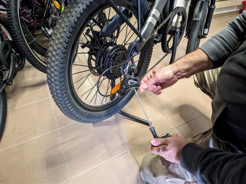 Meglepő a Z20 Max után, de néhány csavart utána kellett húzni, és a fékeket is utána kellett állítani. A képen látható módon, csak a pakkban lévő imbuszkulcsra lesz szükségünk a fék beállításához.