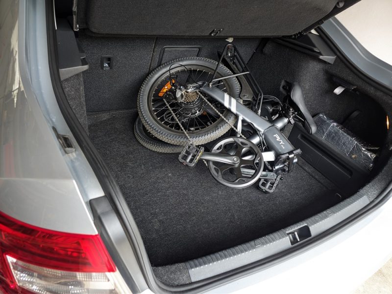 A váz középen összehajtható, a kormány lehajtható, illetve a pedálok is felhajthatók, így az autó csomagtartójában vagy lakásban könnyen elfér. Ez a koncepció már az elődjénél is bevált, és a kerékpárt ideálisá teszi a korlátozott tárolóhelyű ingázók vagy kempingezők számára.