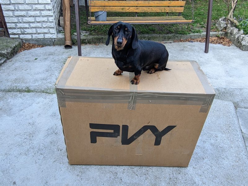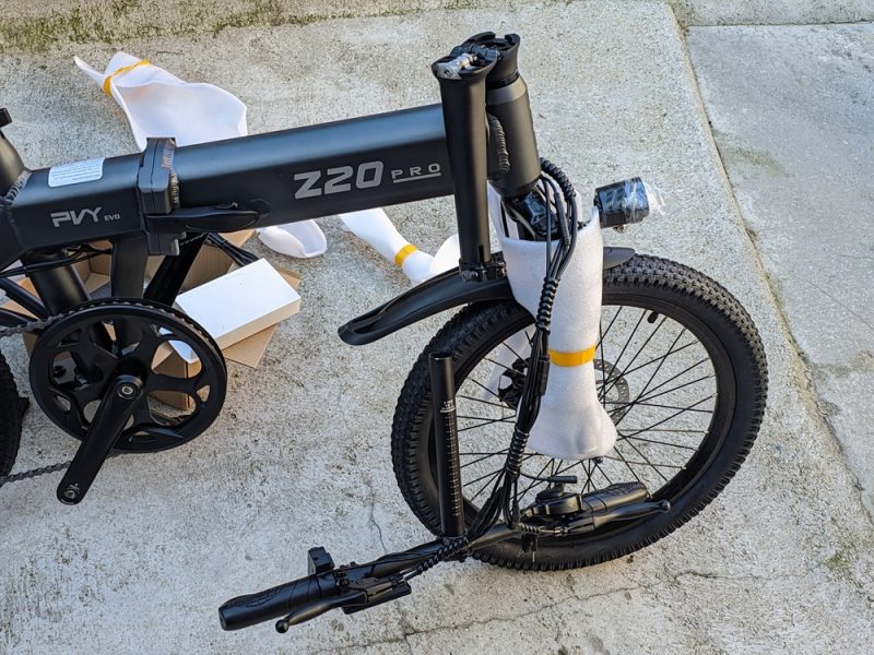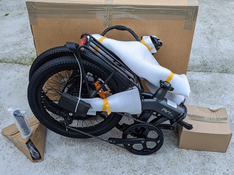 A PVY Z20 Pro Evo doboza nem túl nagy, mivel a bringa összecsukott állapotban van benne.