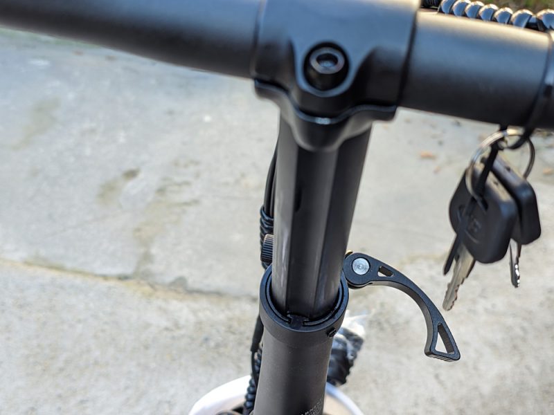 Az összeszerelés nagyon le van egyszerűsítve. A kormányszárat fel kell hajtani, be kell lehelyezni a kormánycsövet, majd a gyorszárral rögzítenünk kell.