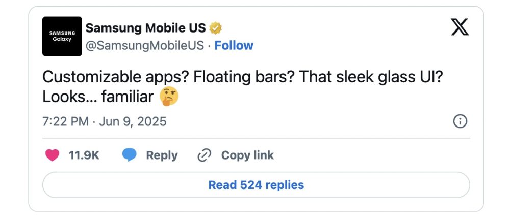 A Samsung szerint az iOS 26 új dizájnja “ismerősnek tűnik”.
