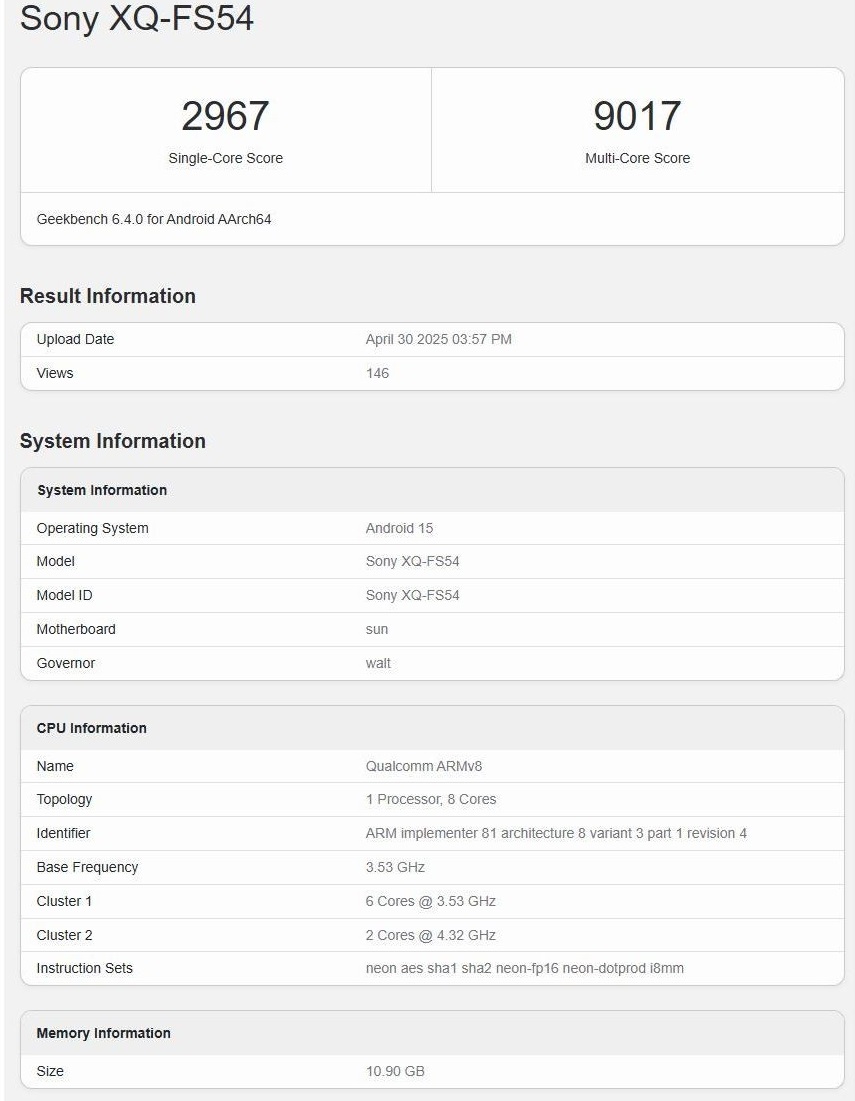 Egyes szóbeszédek szerint a Sony következő zászlóshajója, az Xperia 1 VII május 15-én mutatkozik be a nagyérdemű előtt, és talán a középkategóriás Sony Xperia 10 VII is vele együtt debütál. Az okostelefon prototípusán nemrég lefuttatták a Geekbench-et, a népszerű benchmark alkalmazás pedig megerősítette a készülék belsejében lévő lapkakészlet pontos típusát.