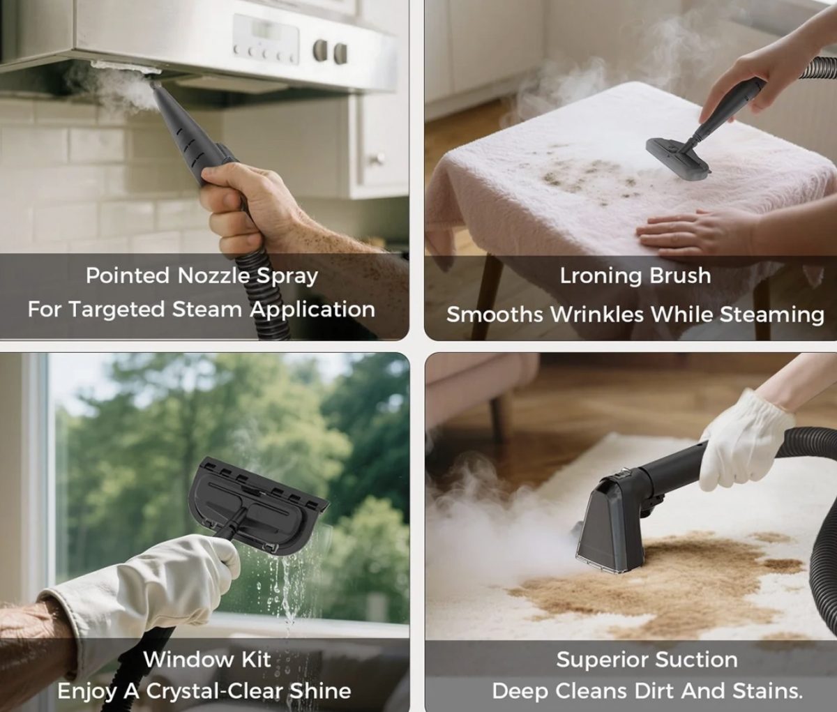 A készülék egyik legnagyobb előnye a sokoldalúság. Nemcsak szőnyegekhez és kárpitokhoz használható, hanem autóülések, matracok, kanapék vagy akár függönyök tisztítására is kiváló. Hasznát vehetjük továbbá a különféle konyhai és fürdőszobai takarítási feladatok során is. Az extra tartozékoknak köszönhetően a nehezen hozzáférhető helyek sem jelentenek problémát.