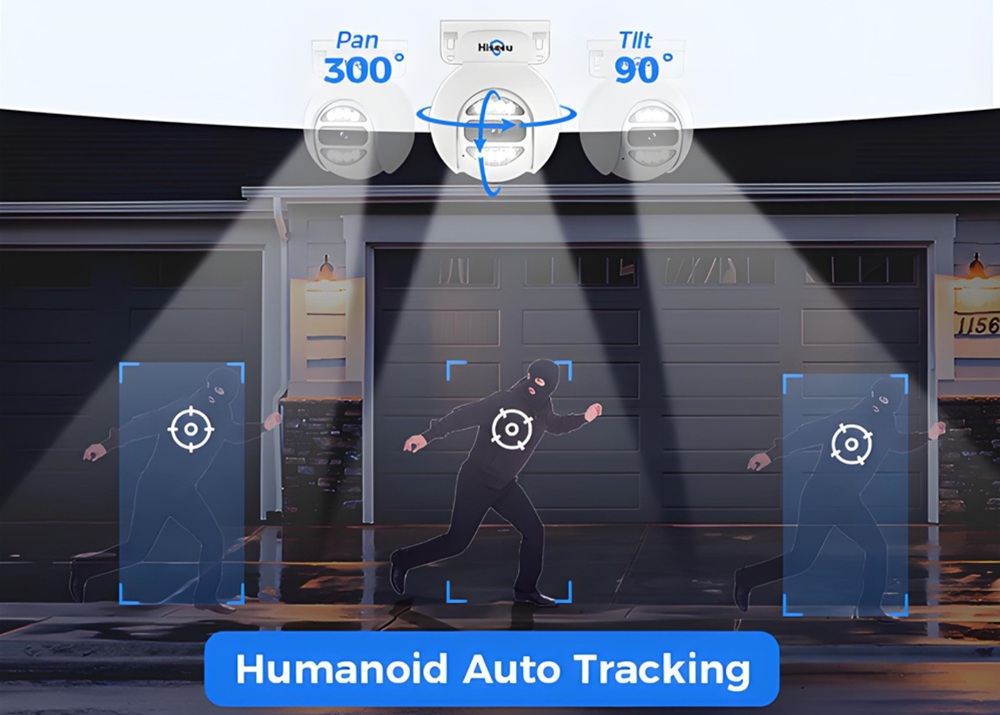 A Hiseeu PK-4YHD685 egyik legfontosabb extrája az AI-alapú emberfelismerés és automatikus követés. Amint a rendszer emberi alakot azonosít, a kamera mozgásba lendül, és követi a célpontot addig, amíg az el nem hagyja a látómezőt. Ez nemcsak több használható felvételt eredményez, hanem elrettentő hatása is van.