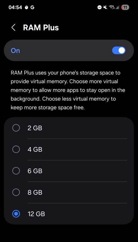 A Samsung még 2021-ben vezette be a RAM Plus funkciót, ami lehetővé teszi, hogy a háttértárból valamennyit lecsípjen a rendszer, és azt virtuális memóriaként hozzáadja a készülék fizikai RAM-jához. Nyilván a kettő nem egyenértékű, mivel a belső térhely nem biztosítja ugyanazt a sebességet, de így is lehet némi pozitív hatása, ha több alkalmazást szeretnénk megnyitva tartani a háttérben.