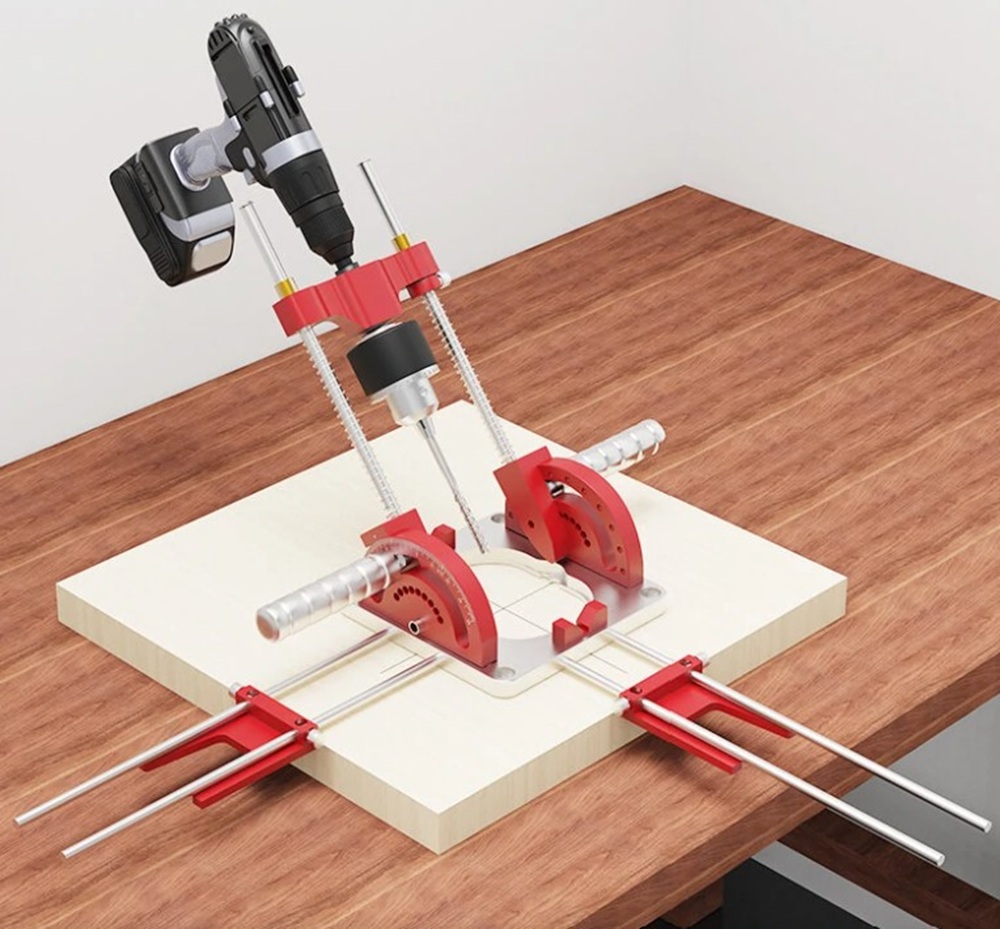 Az Enjoywood többfunkciós fúróvezető tökéletes kiegészítője a barkács- és bútorasztalos projekteknek: több szögben használható, állítható magasságú, így akár mélyebb vagy döntött fúrásokat is precízen el tudsz végezni. Az alumíniumötvözetből készült vezetőkarok stabilitást biztosítanak, a beépített helymeghatározó blokkok pedig segítenek elkerülni a pontatlanságokat. A fogantyús kialakítás kényelmes fogást biztosít, így nagyobb erőkifejtésnél sem fárad el olyan könnyen a kezed. Ha megbízható pontosságra van szükséged bútorok, szekrények összeállításánál vagy különböző DIY munkáknál, ez a fúróvezető nagyban megkönnyíti a munkát.