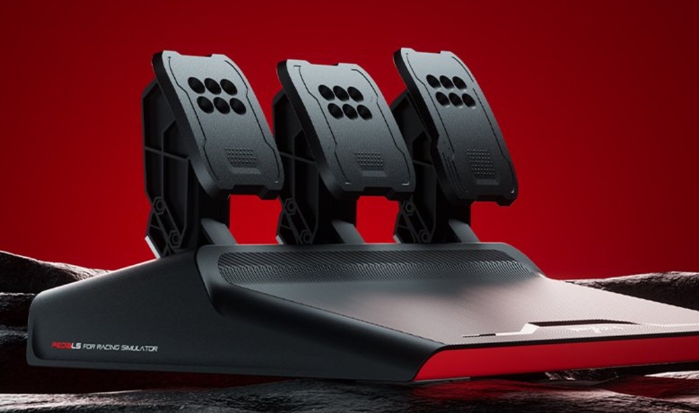 A fékpedál lineáris kialakítású, nagy pontosságú érzékeléssel. A pedálok testreszabhatók: állítható a szögük, és a dedikált alkalmazás segítségével finomhangolhatók a válaszgörbék is. A kuplungpedál megléte elengedhetetlen a manuális H-váltós rendszerek használatához.