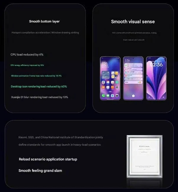 A gyorsabb működés érdekében a HyperOS 3 új ütemezési rendszert kapott az alkalmazások és a grafika számára. A Xiaomi konkrét számokat is közölt, a kínai gyártó szerint az applikációk akár 21%-kal gyorsabban nyílhatnak meg HyperOS 3 alatt, miközben a videólejátszás 10%-kal lesz folyamatosabb.